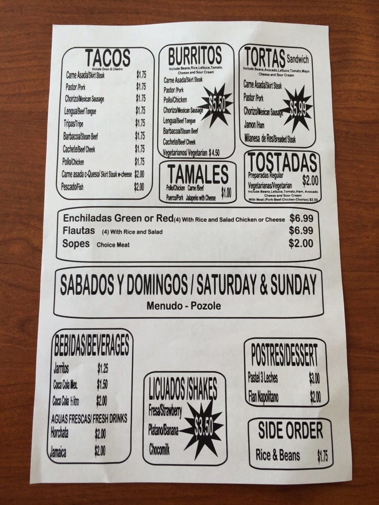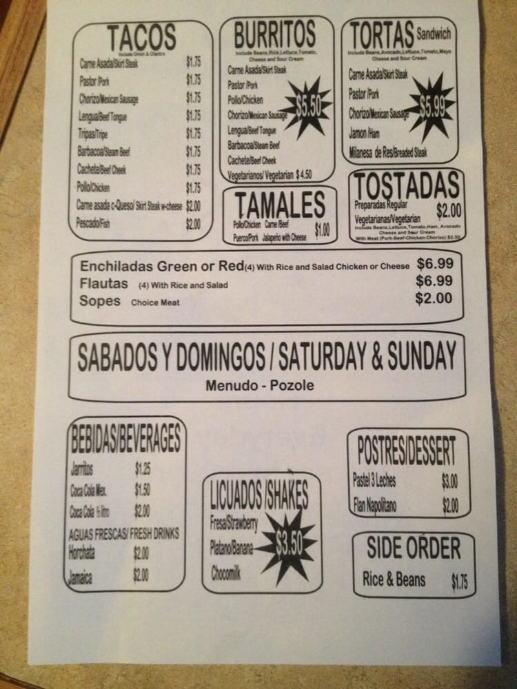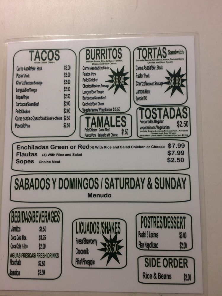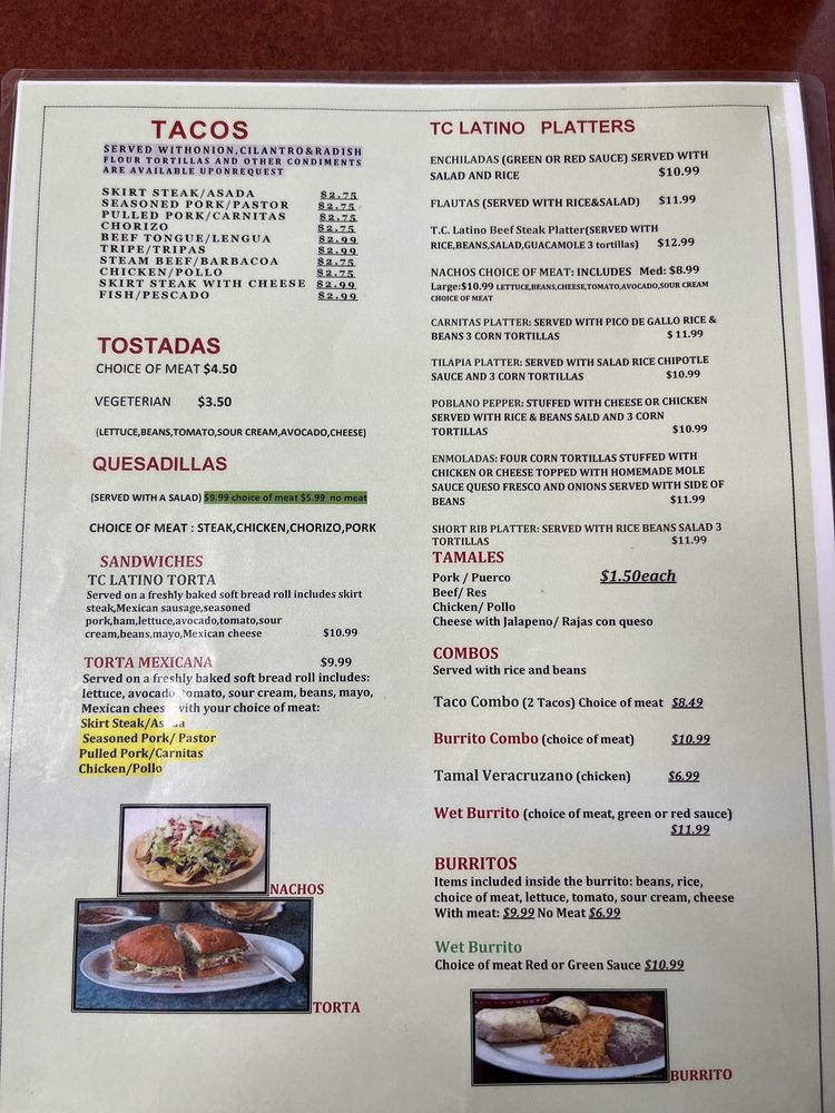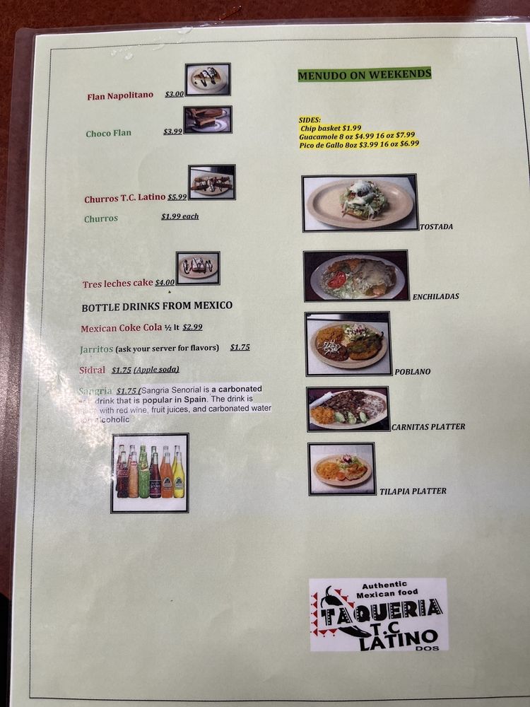 Taqueria TC Latino Dos Menu